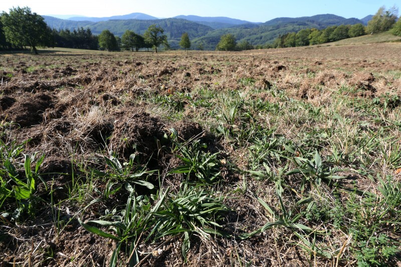 Ce n’est plus une prairie, c’est une vaste étendue de mottes de terre. Face à l’ampleur des dégâts, Bertrand Richard, qui cultive cette prairie sur les hauteurs de Steige, est amer, d’autant qu’il affirme avoir signalé les dégâts lorsqu’ils ont commencé. Mais la réponse apportée par les chasseurs locaux n’a, semble-t-il, pas été assez rapide, ou pas assez efficace. « Maintenant, le mal est fait ! » Et le cas de Bertrand Richard n’est pas unique. C’est même plutôt la règle dans le val de Villé.