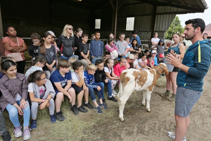 « Les bottes sont faites en paille ou en foin ? Pourquoi le taureau a un anneau dans le nez ? » La ferme Boehmler, à Forstfeld, s’est transformée en cour d’école, mardi 29 mai. Trois classes de primaire de Haguenau ont visité l’élevage dans le cadre de l’opération nationale Fermes ouvertes, portée par la FNSEA.
