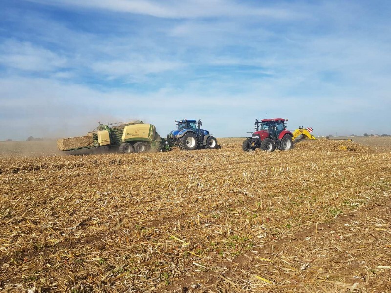 La FDSEA du Bas-Rhin organise une opération paille entre céréaliers et éleveurs dans le département. Les céréaliers mettent à disposition des cannes de maïs qui sont broyées et pressées en balles carrées.