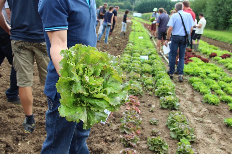 Il y a 35 jours, 50 variétés de salades ont été plantées sur une parcelle à l’est de Colmar. Quatre types de salades ont été choisis : batavia, laitue, feuille de chêne blond et feuille de chêne rouge. « Il a beaucoup plu avant l’installation mais quasiment plus depuis, cela a causé un souci au niveau de l’irrigation, avec des températures frôlant toujours les 30 °C », prévient Johanna Bodendorfer, conseillère en techniques alternatives et biologiques.