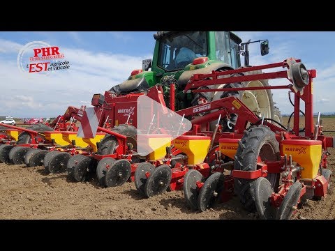 Jeudi 12 avril, à proximité de Bolsenheim dans le Bas-Rhin, tournait le semoir à betteraves Matrix 1200 de la marque Grimme. Muni de 12 rangs, ce semoir présente la particularité d’être à sélection mécanique et entraînement électrique.